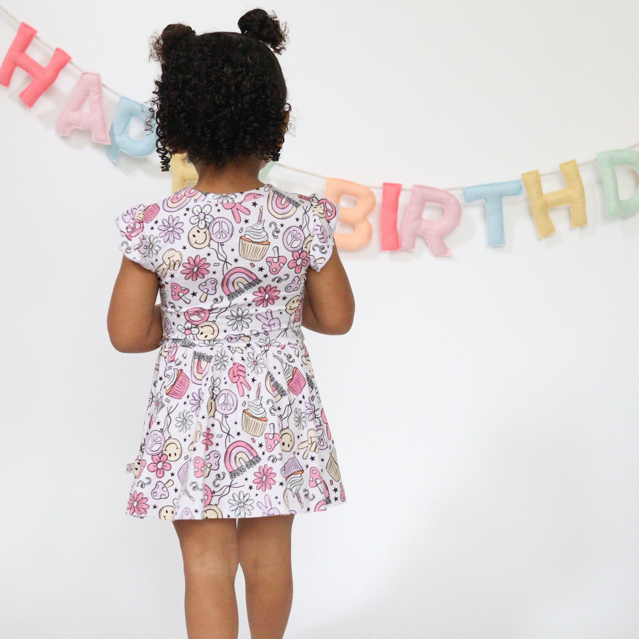 3-6m Groovy Birthday Bodysuit Twirl Dress