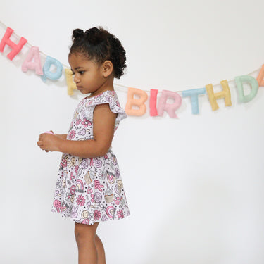 Your babe will feel sweet and special in this Birthday Bodysuit Twirl Dress. This soft and comfy dress features snaps on the bodysuit twirl that is perfect for diaper changes at any time. This dress that will make your babe the belle of the ball! Who said every day can't be celebrated?