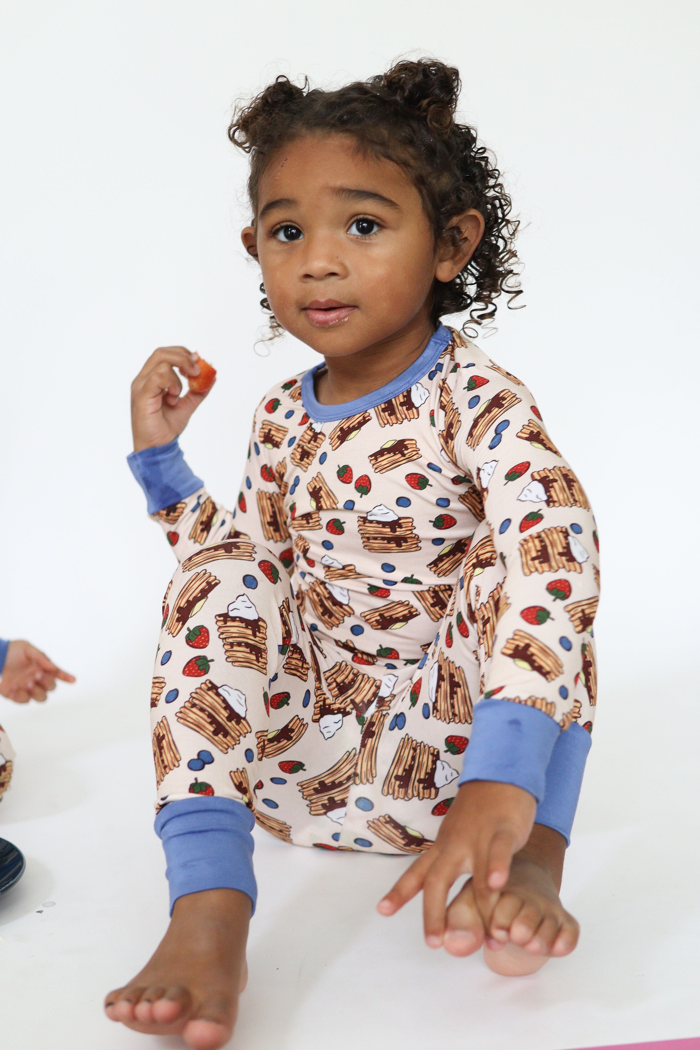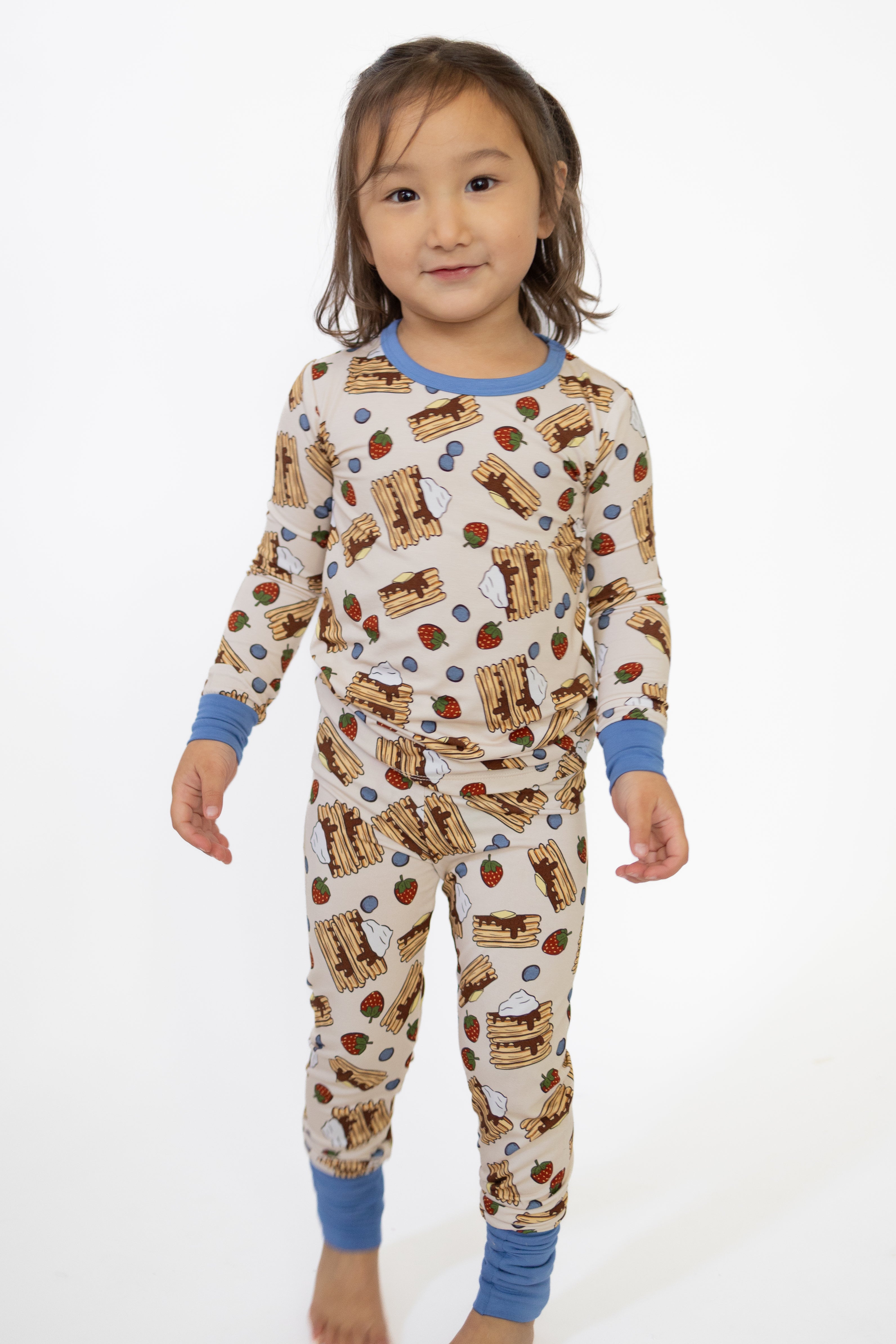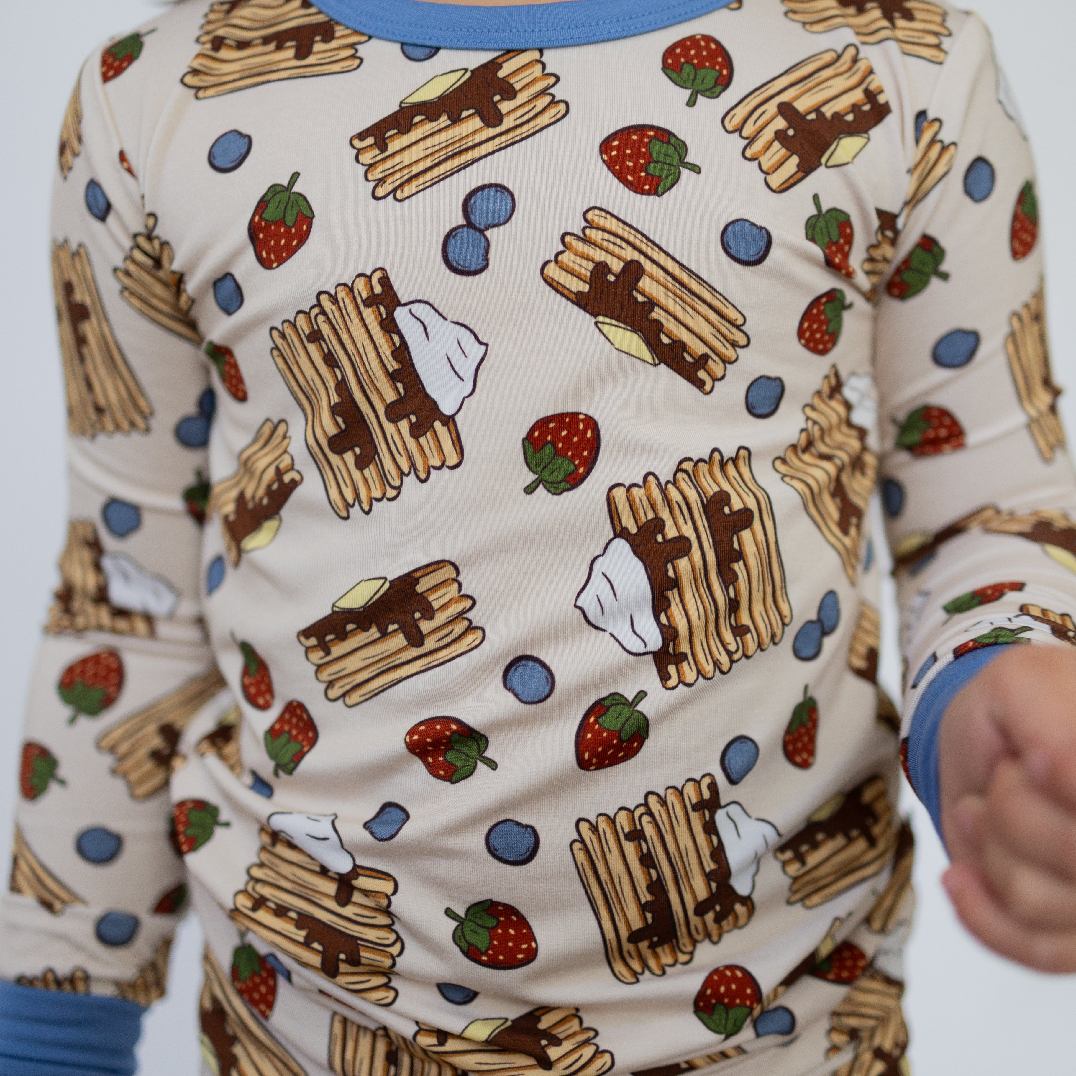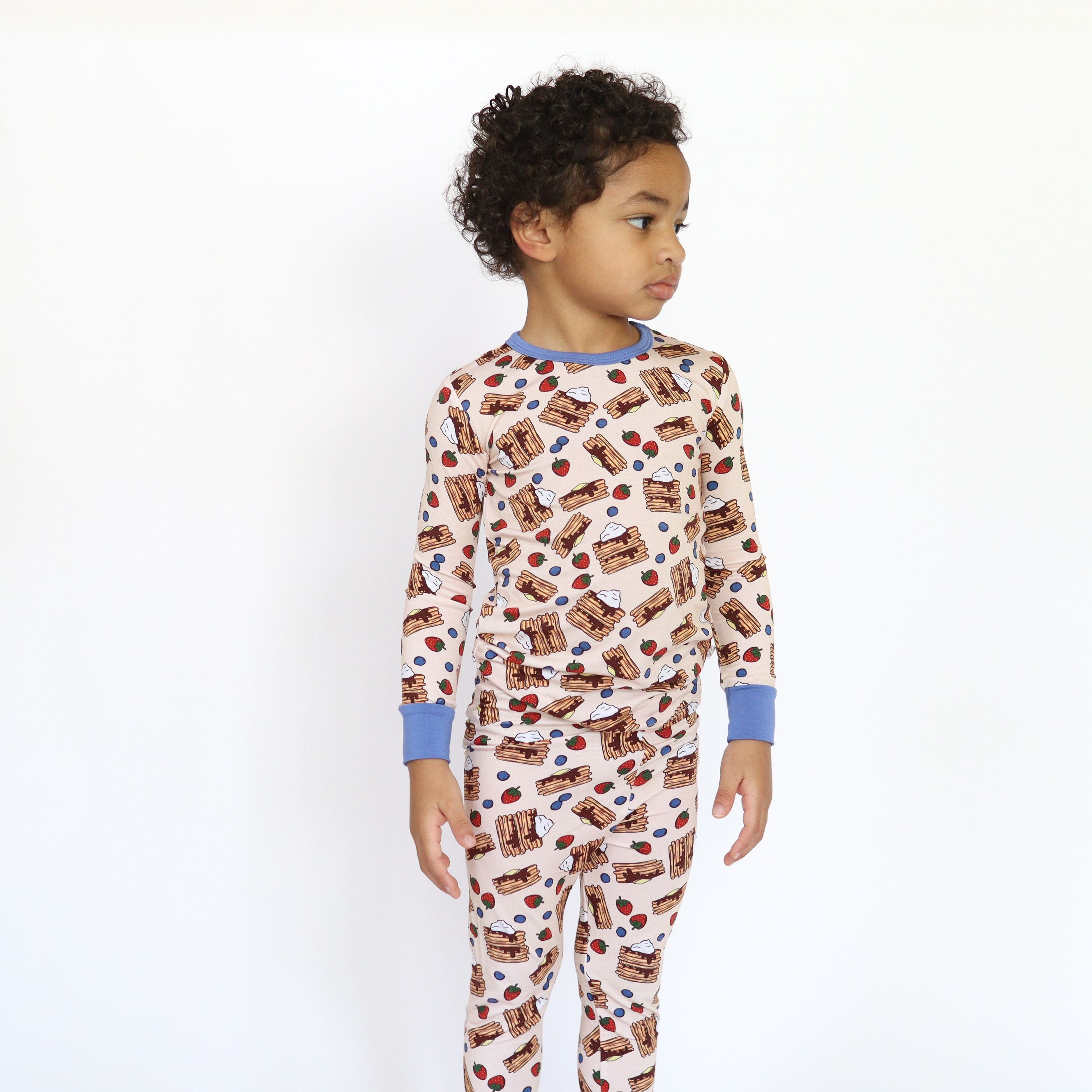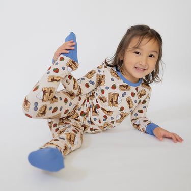 Breakfast just got comfier with our Short Stack Long Set, featuring our fan-favorite pancake print topped with blueberries and strawberries. Made from our signature buttery-soft bamboo fabric, this toddler pajama set is breathable, stretchy, and gentle on sensitive skin. Designed with a cozy, flexible fit and fold-over feet to match siblings, it’s perfect for sleep, play, and lazy weekend mornings. Sweet dreams guaranteed—pancakes optional. 🥞🍓