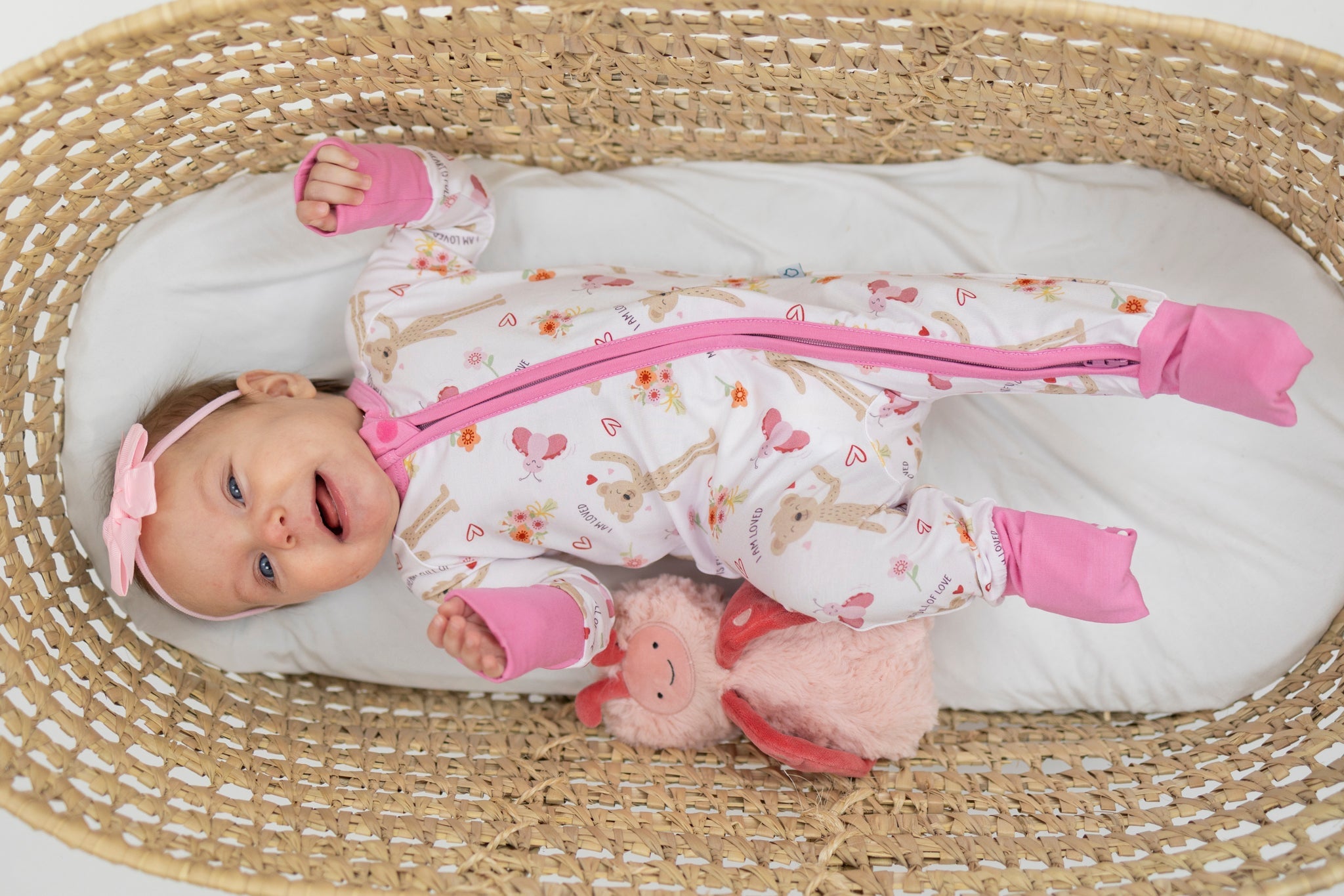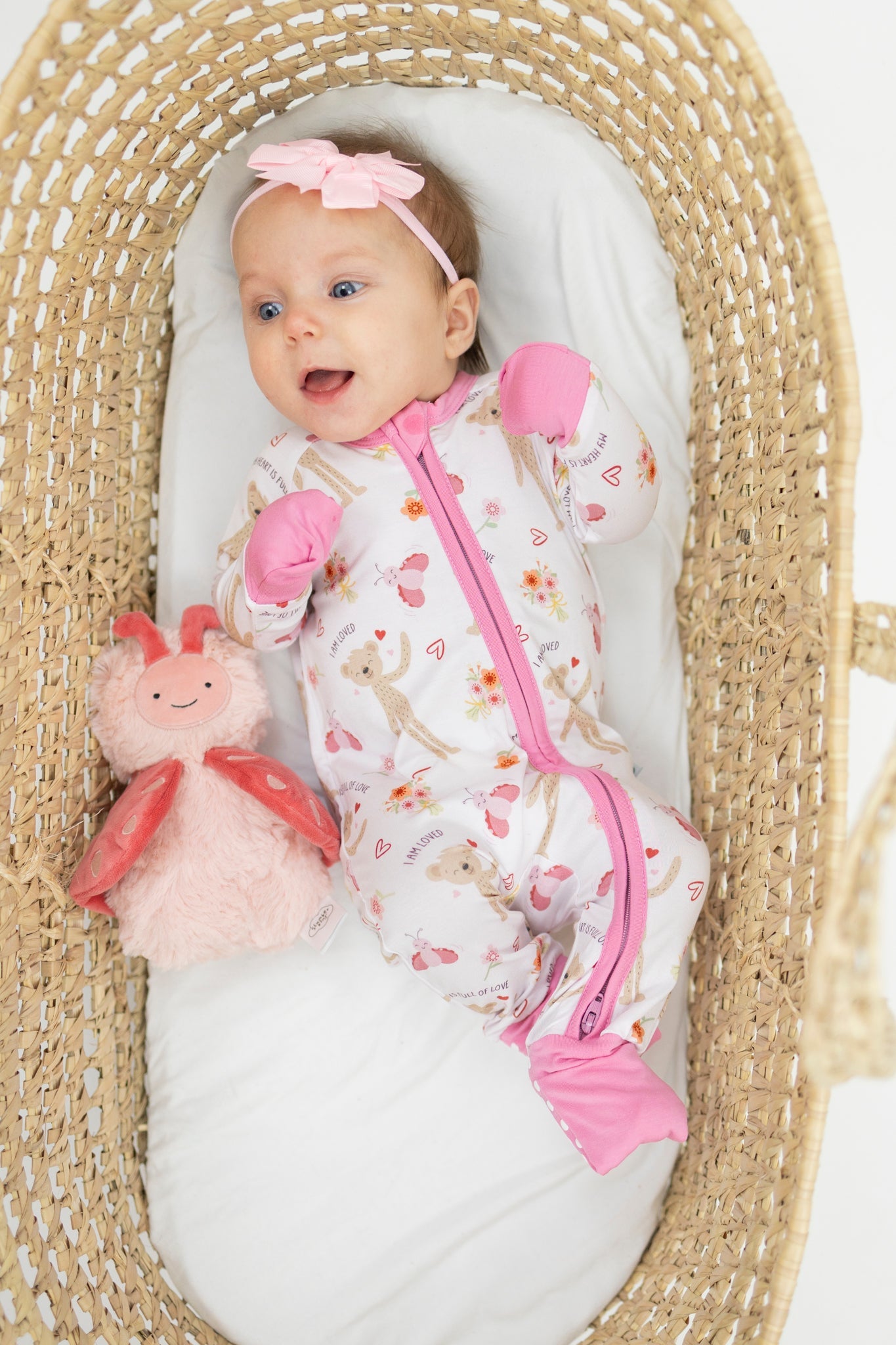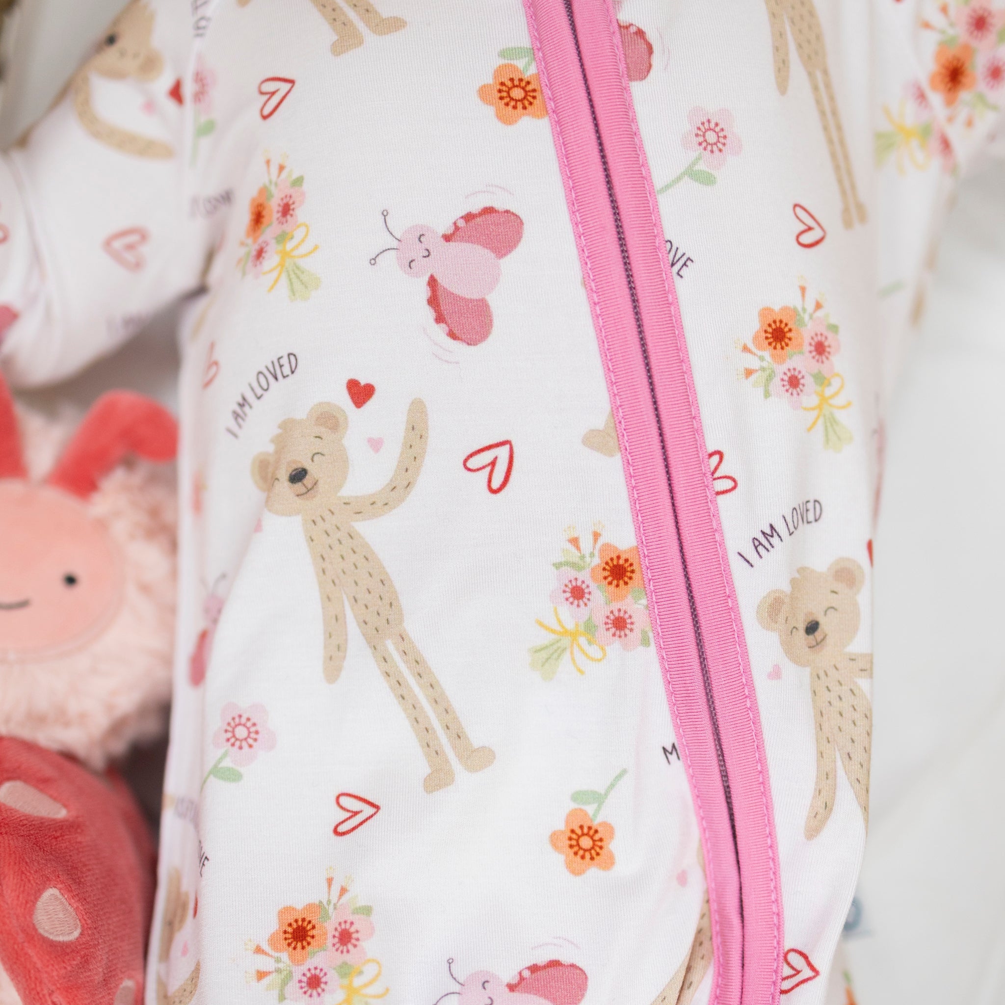 Our Slumberkins x Monkeeroos Bamboo Romper featuring Honey Bear and Love Bug is designed for comfort, connection, and cuddles. Made from ultra-soft, breathable bamboo lyocell, this romper is gentle on sensitive skin and perfect for day or night wear. Thoughtfully crafted for little ones who love to move—and moms who love meaningful details.