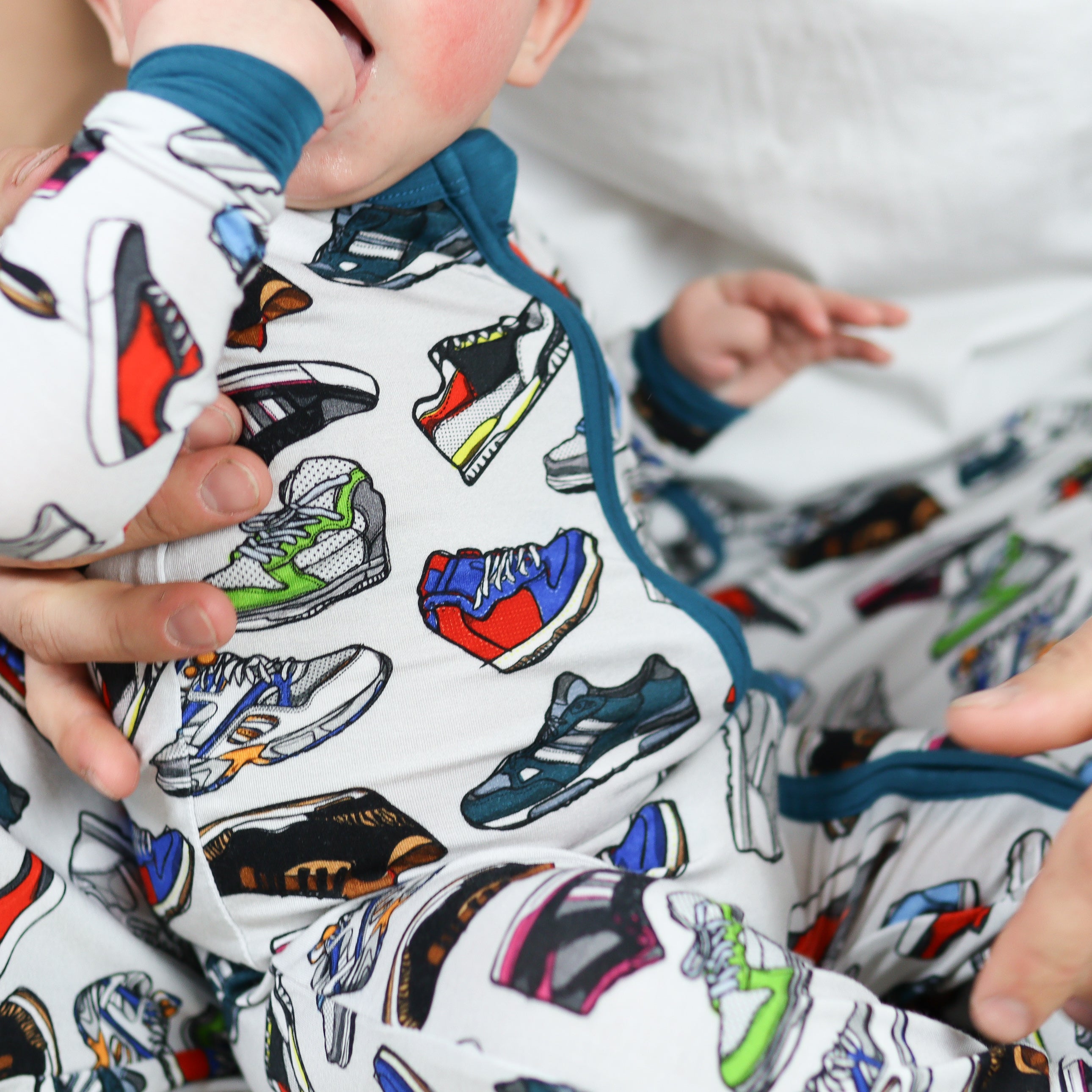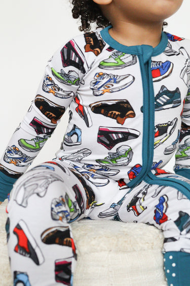 The Sneakerheads Romper is the perfect bamboo pajama for babies and toddlers who love sneakers and street style. Made from premium bamboo lyocell, this ultra-soft baby romper is breathable, temperature regulating, and gentle on sensitive skin. With a stretchy design that grows with your child and a convenient zipper for easy changes, it’s a parent favorite for comfort, durability, and style.