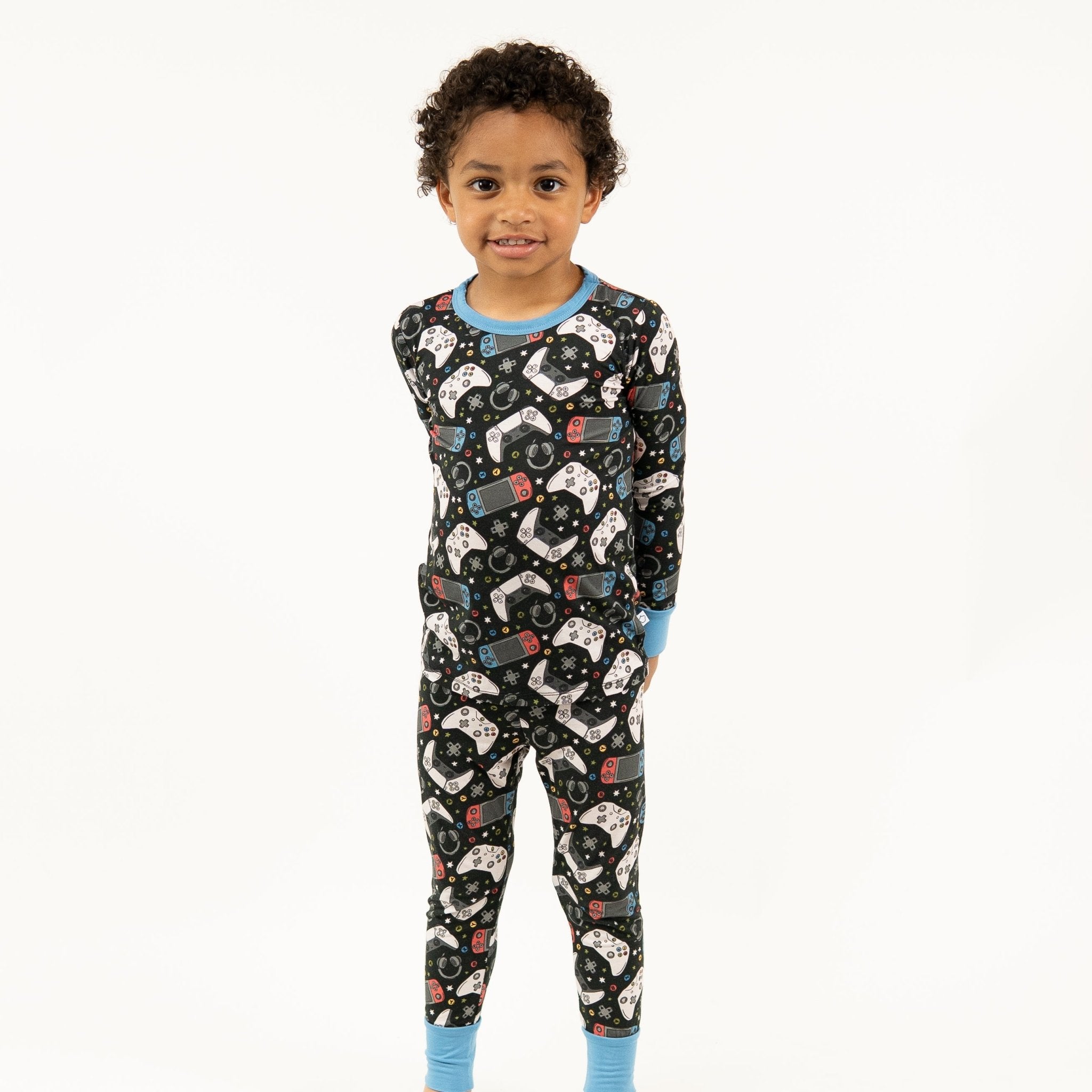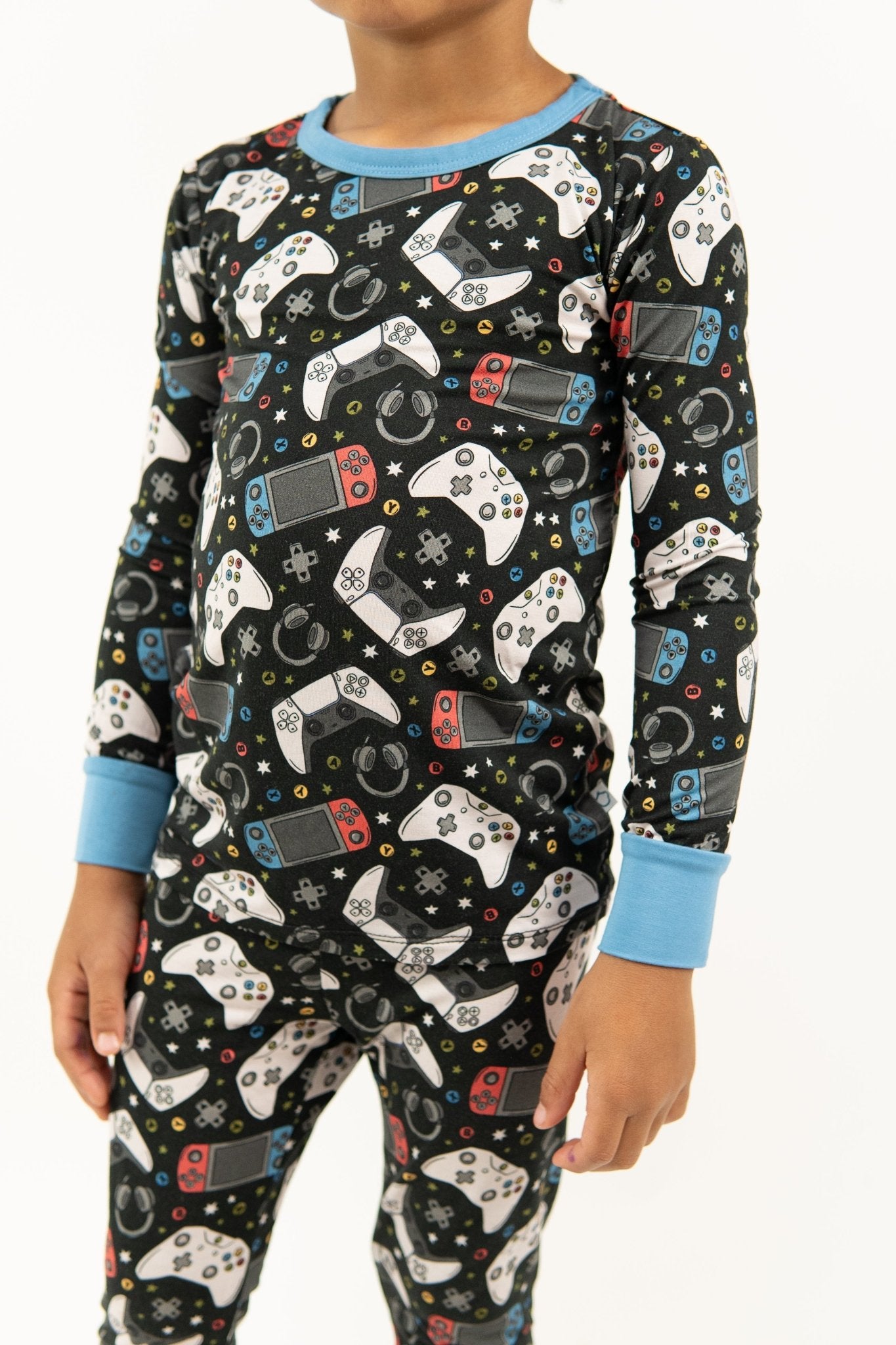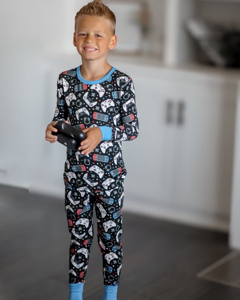Press start on cozy with our Gamer Bamboo Long Set, made for little players who never slow down. Crafted from buttery-soft, breathable, and chemical-free bamboo lyocell, this two-piece set keeps kids comfortable for gaming, lounging, and sleeping. With a playful video game–inspired print and a stretchy, durable fit that grows with them, it’s the ultimate combo of fun style and all-night comfort.