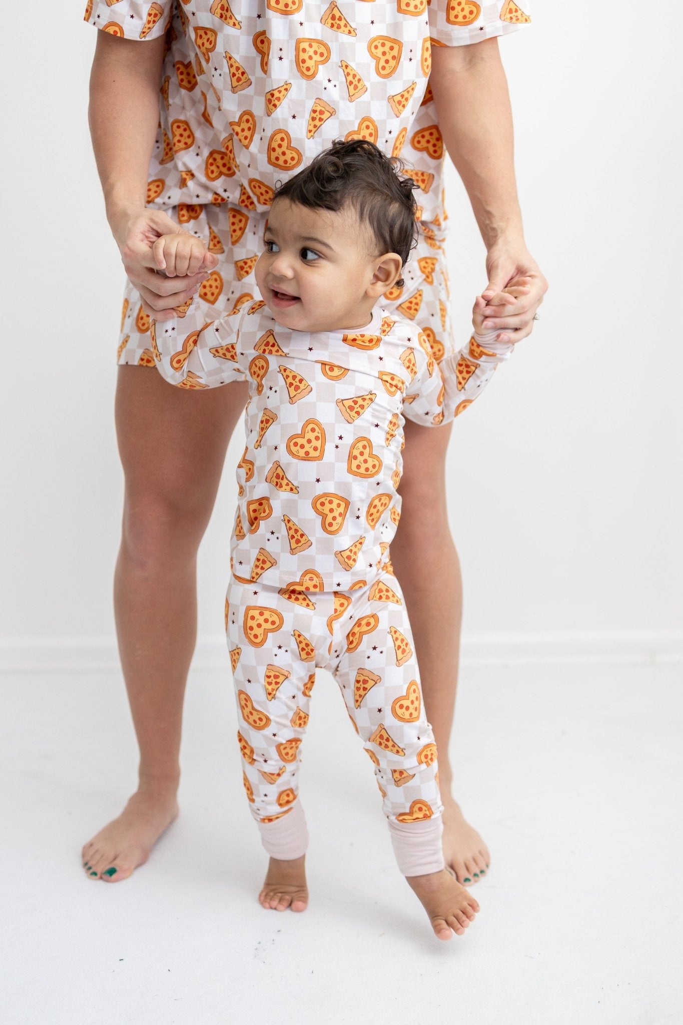 The Pizza My Heart Long Set is perfect for kids who love comfort with a little personality. Crafted from ultra-soft bamboo lyocell, this pajama set features a neutral checker background with heart-shaped pizzas for an easy, playful look. Lightweight, breathable, and naturally stretchy, it’s designed for all-night comfort and all-day lounging. Durable, hypoallergenic, and temperature-regulating, it’s a favorite for growing kids.