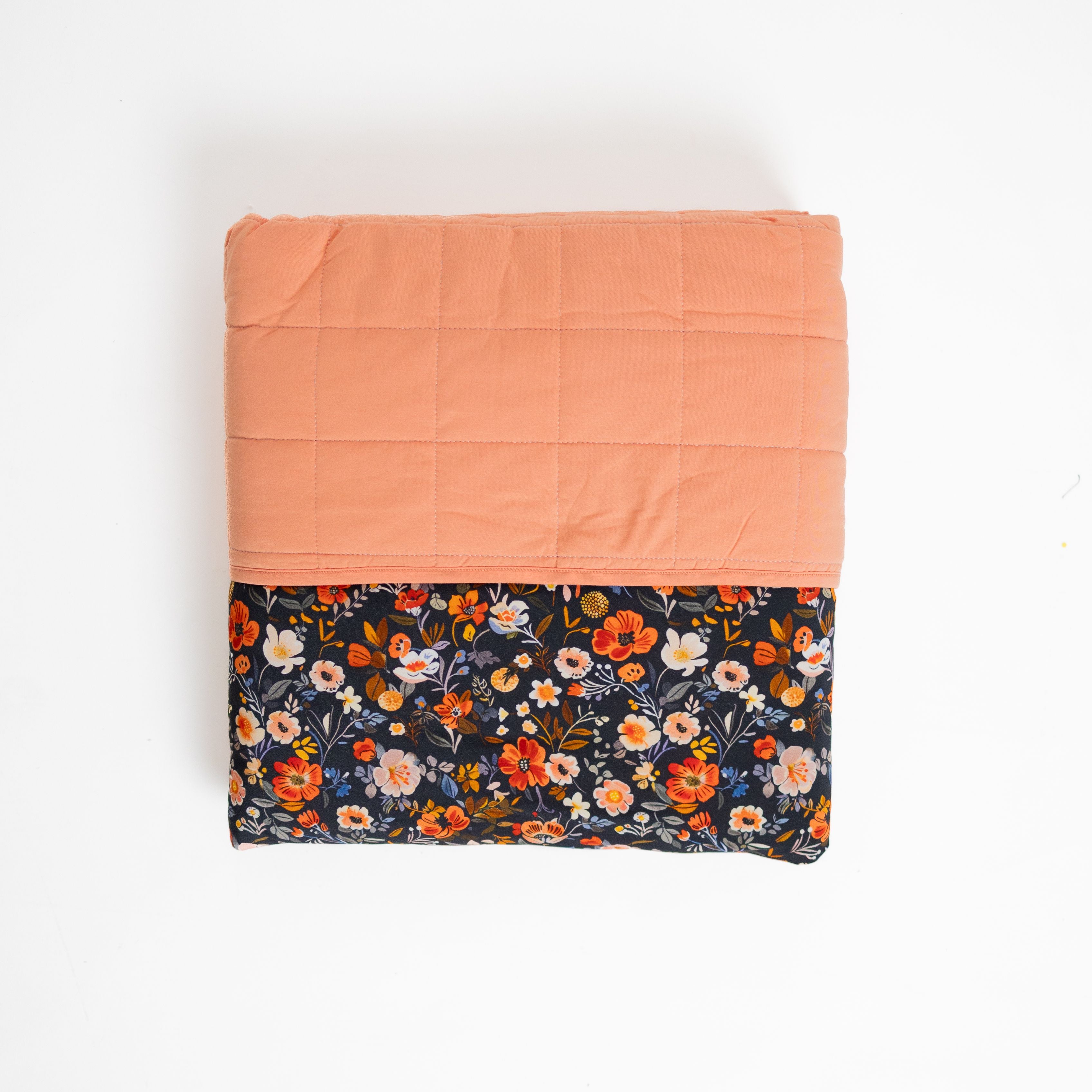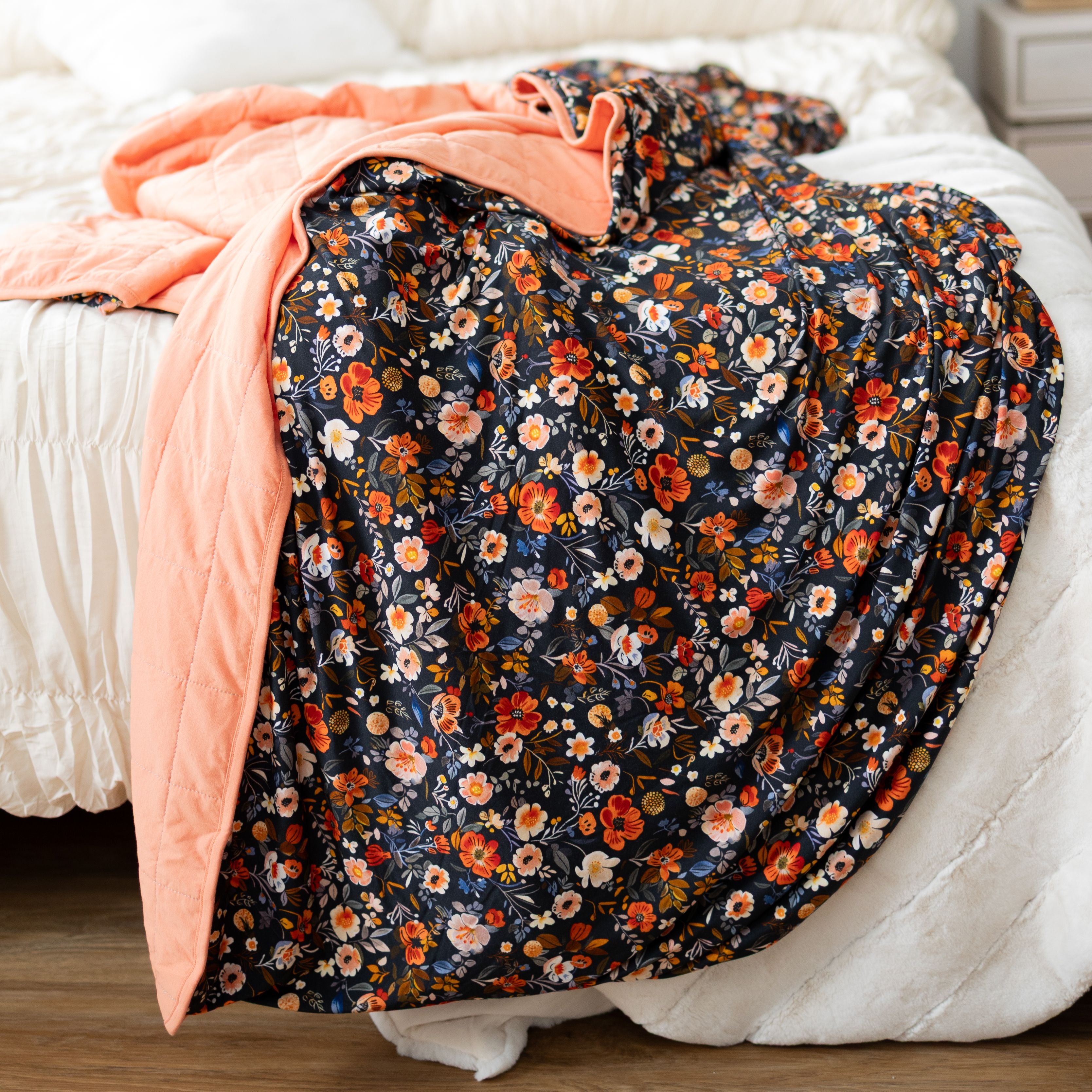 Wrap yourself in fall comfort with our Autumn Bloom Quilted Blanket — the coziest way to snuggle this season. Featuring our dreamy autumn floral print on one side and a coordinating soft peach on the other, this blanket is the perfect blend of style and softness.
