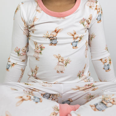 Adorable meets unbelievable softness in our Vintage Bunny Bamboo Pajamas! Featuring a dreamy cream fabric with watercolor bunnies and delicate florals, this springtime favorite is designed for all-day comfort and all-night coziness. Made from our signature buttery soft 95% Bamboo Lyocell and 5% Spandex, it’s breathable, temperature-regulating, and tagless for the most gentle feel on sensitive skin. With incredible stretch that lasts up to 3x longer, this pajama set is as practical as it is precious—because little ones grow fast, but their favorite pajamas should last!